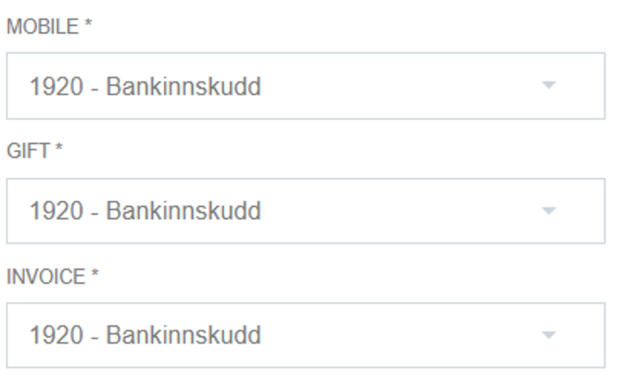 - Payment methods: Select the correct account for cash, card payments, mobile payments, gift cards, and invoice sales.