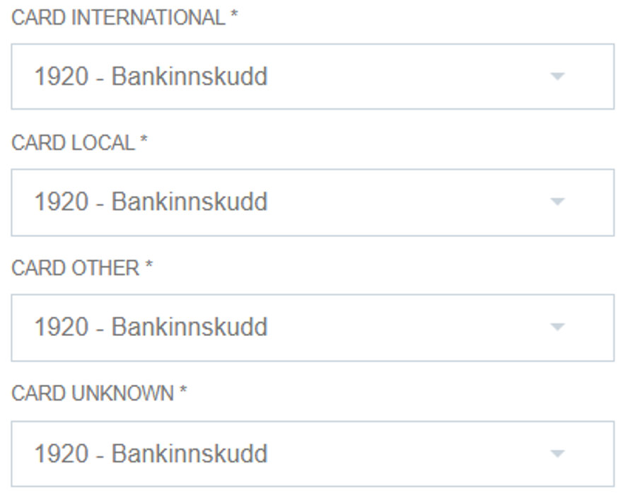 Assign accounts to card payments such as local, international, and other card types.