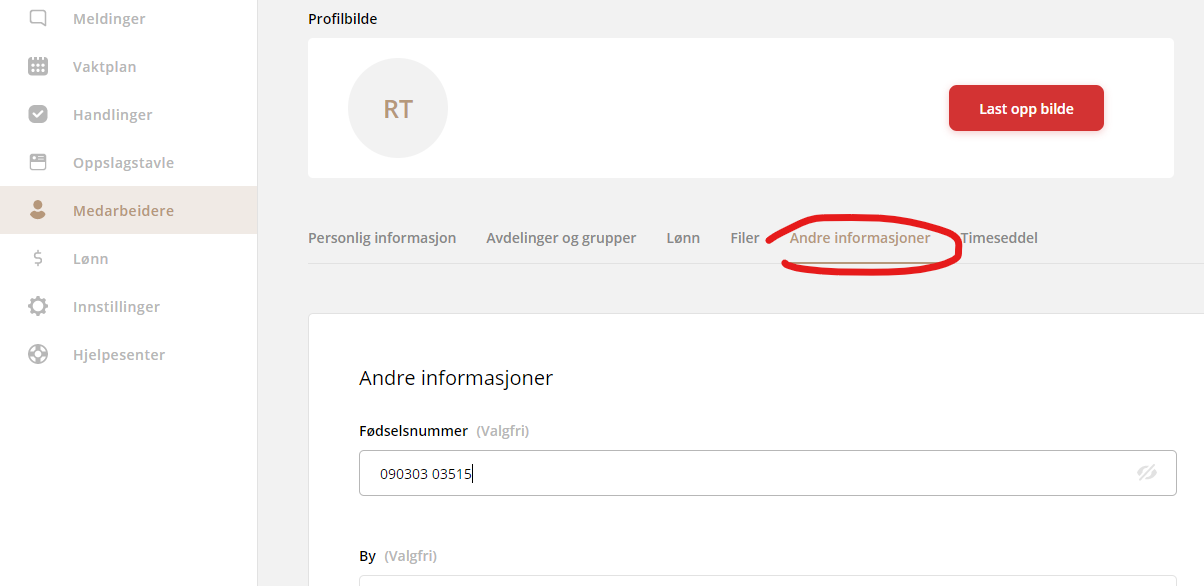 Under "Andre opplysninger" skrives inn personnummer eller P-nummer.