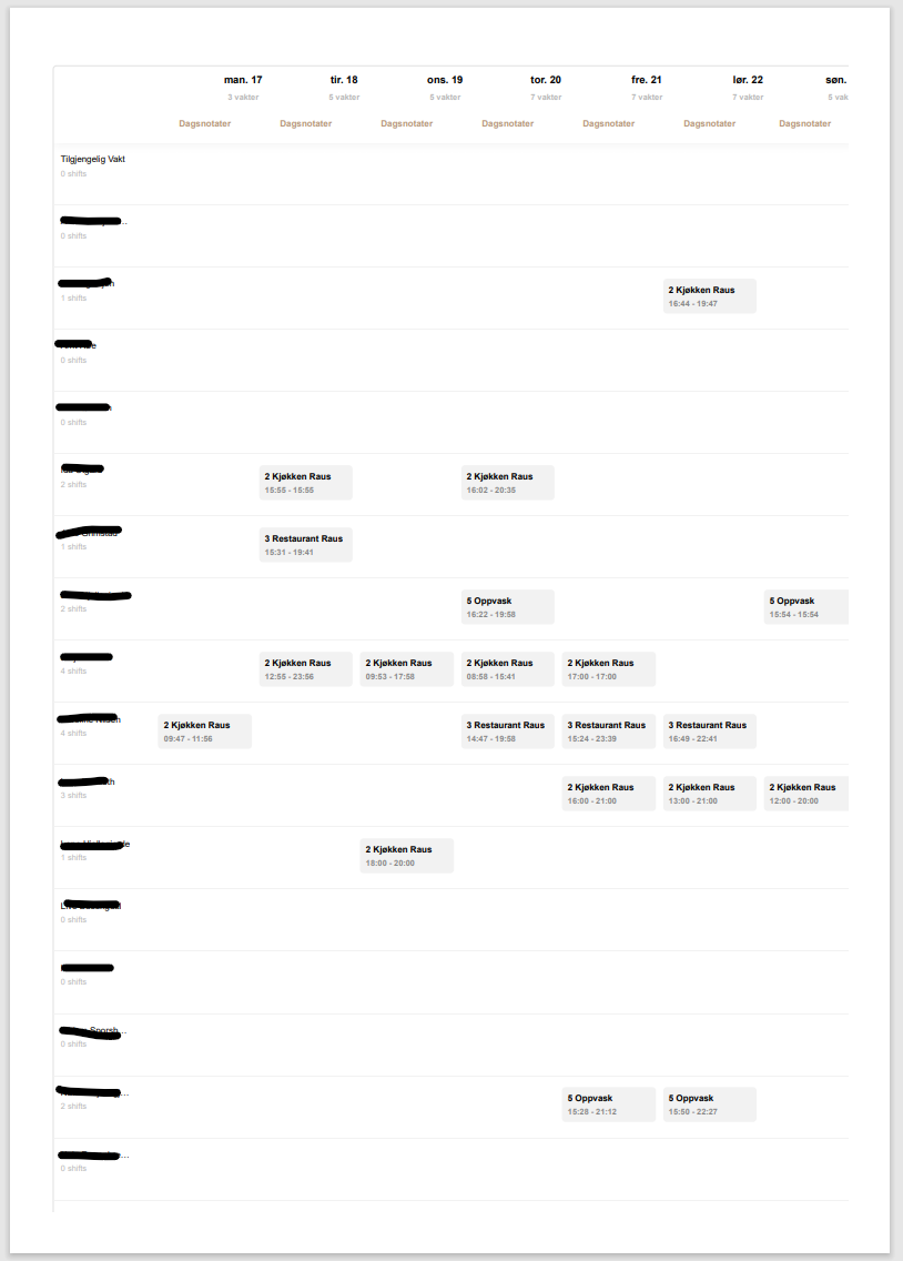 - Det må alltid være en vaktplan minst 14 dager frem i tid.