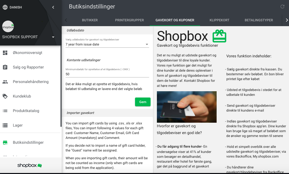 Ønsker du å sette hvor lenge et gavekort skal være gyldig? Det kan du gjøre under Butikkinnstillinger.